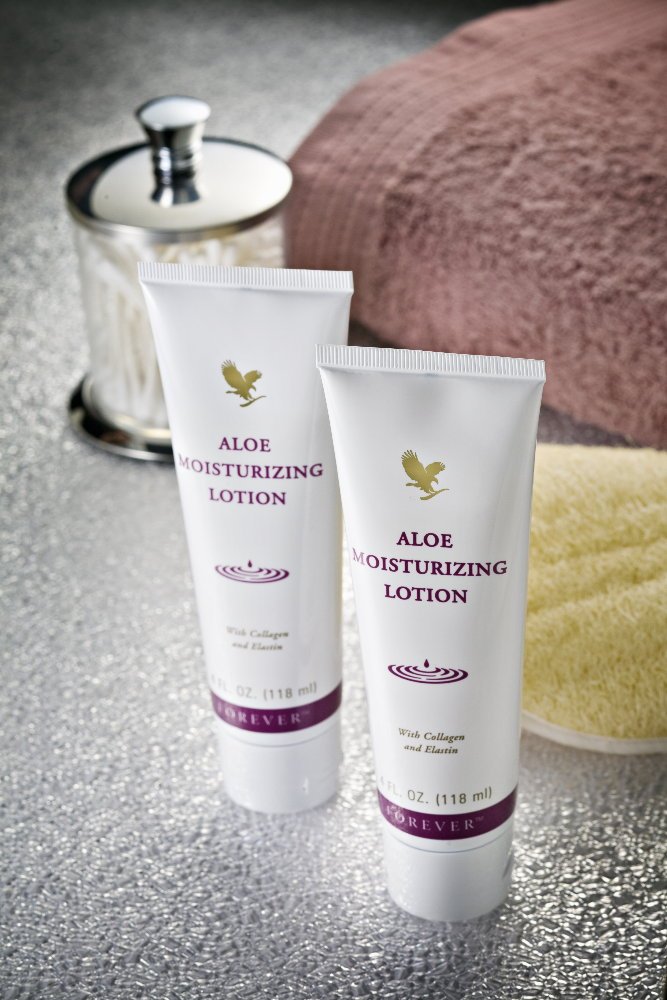 Den tilfører ekstra meget fugt på grund af sit indhold af abrikoskerneolie, jojobaolie og kamilleekstrakt. Lotionen indeholder kollagen og elastin, som begge gør huden spændstig, samt plejende E-vitamin. Aloe Moisturizing Lotion har en cremet konsistens, trænger hurtigt ind i huden og gør den blød og silkeglat igen. Den er lige så god til ansigt og hænder som til hele kroppen og kan med fordel anvendes som underlagscreme. Indeholder ikke lanolin.